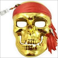 Пластиковая карнавальная маска пиратский череп золотого цвета ...