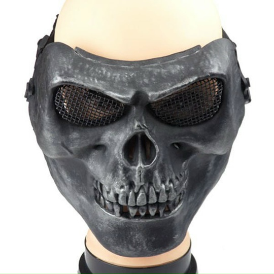 Размеры: 17 Х 17 см. Цвет: серебристо-черный. Маска в форме черепа. Аксессуар на резинке. Маска с прорезями для носа и рта и сеткой на глазах. Оригинальный атрибут для создания жуткого образа на Хэллоуин или тематическую вечеринку.