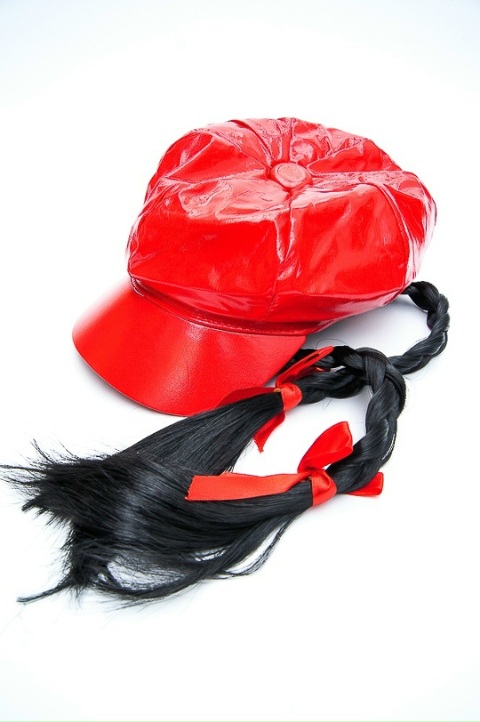 Стильная карнавальная кепка с двумя длинными косичками поможет создать очаровательный образ для праздничного мероприятия или маскарада. Кепка имеет твердый, слегка загнутый козырек и пуговку на макушке. Косички выполнены из искусственного волокна. Пряди в косичках закреплены на кончиках бантиками из лент.