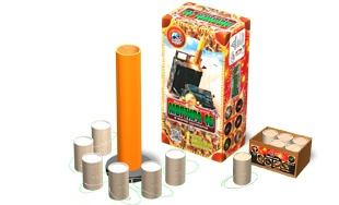 1.Золотой кокос с пестиком зеленых жемчужин; 2.Синяя хризантема с белыми мерцающими стробами; 3.Серебряный кокос с пестиком зеленых жемчужин; 4.Красный кокос, переходящий в мерцание 1000 хризантем; 5.Красная хризантема с белыми мерцающими звездами; 6.Серебряная трещащая мерцающая ива с пестиком красных звезд.