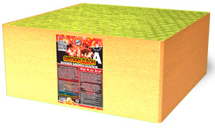 Разноцветные звезды раскрываются разноцветными падающими листьями и пчелиными ульями; двухуровневый эффект: на нижнем уровне бурак синих звезд, на верхнем - золотые короны с синими жемчужинами в золотом мерцании; веерный V-эффект: короны с пурпурными звездами в зеленом мерцании; веерный W-эффект: в центра красные кроссетты, по сторонам золотые короны в синих жемчужинах; веерный Z-эффект: золотые трещащие кометы и золотые ивы.